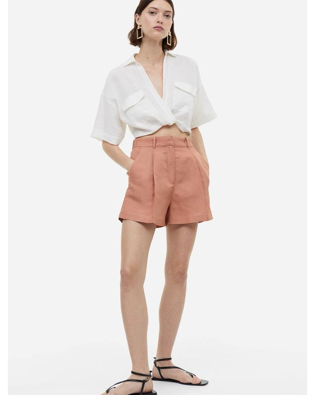Класичні шорти з лляної та віскозної тканини. Висока талія. Одягала декілька раз Теракотовий колір 55% віскоза 45% льон