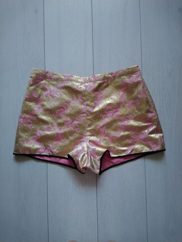 В идеальном состоянии. С подкладкой. С боку на замочке. Размер UK 16, EUR 44. Материал 40% полиэстр, 35% вискоза и 25% люрекс. Высота со стороны 33 см. Посадка спереди 37 см. Полуобъем пояса 40-42 см, бедер 57 см