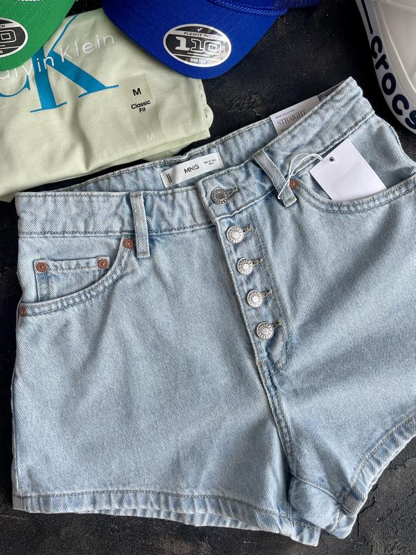 Шорти M A N G O Джинсові шорти STRAIGHT, на ґудзиках Висока посадка, гарний блакитний колір 100% cotton р.34 (xs) р.36 (s) Дивись інші наші обʼяви, ти обов’язково знайдеш щось для себе, 100%❤️