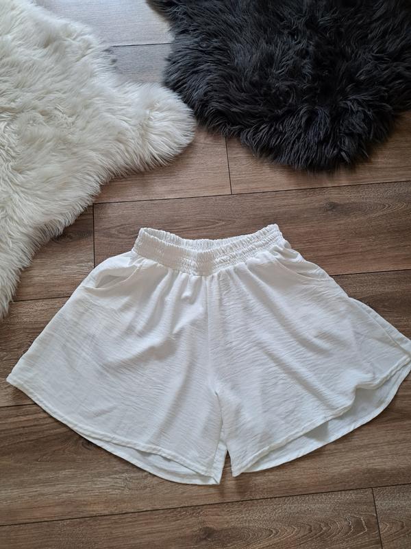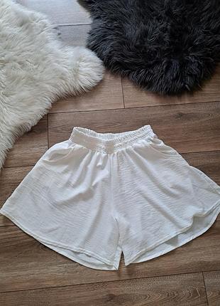 Легкие белые шорты из ткани жатка. с карманами