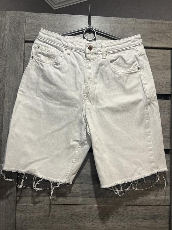 Продам шорти бермуди Sinsay, розмір М. Колір не вистіраний, яскравий білий, тільки на кармані малесенька плямка від фарби зеленої.