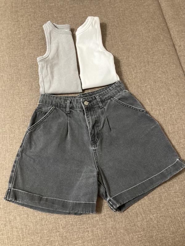 Джинсові шорти чорного кольору в гарному стані. Висока посадка, гарна довжина, йдуть трохи вільні до низу, ногу не обтягують. Підійдуть на розмір S.