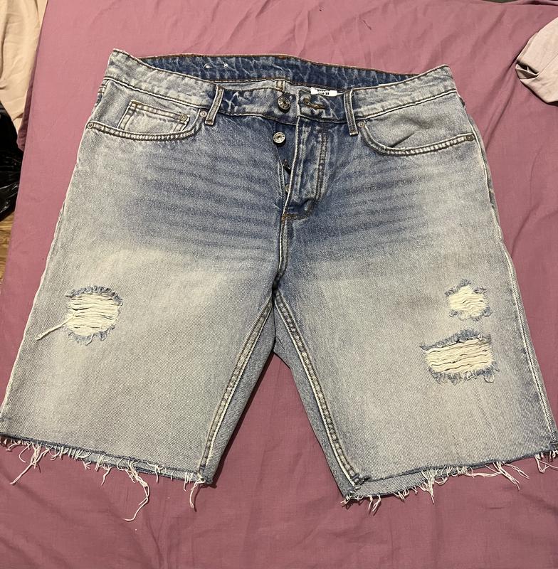 Не носилися але зняті бірки. Ідеальний колір деніму, необроблений край, ширинка на гудзиках Пояс - 40см Бедра - 50см Зовнішня довжина 45см Внутрішня довжина 22см
