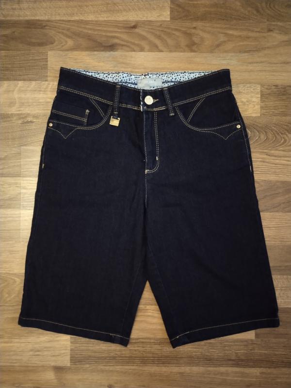 Джинсовые шорты 81% - котон 17% - полиэстер 2% - еластан Длина - 52 см Талия - 34 см Бедра - 44 см Длина спереди - 25 см Длина сзади - 33 см Ширина штанины внизу - 22, 5 см