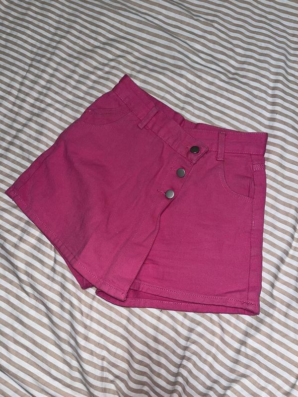 Шорти-спідниця. Насичений рожевий колір Одяг не має дефектів. Розмір по бірці 27 (S) - підійде на XS та S Продаю, бо не ношу (не мого розміру) Напів обʼєм талії -32 см Напів обʼєм бедер -40 см Довжина - 34 см