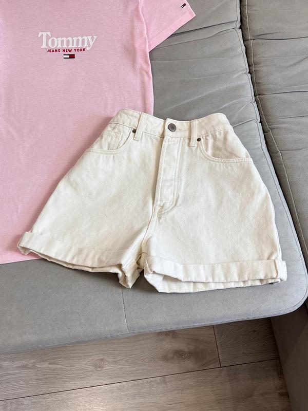 Джинсові шорти Stradivarius висока посадка розмір 8, 36 🏷️ ціна 640 грн пояс 35.5 поб 52.5 довжина по зовнішньому шву 35 по внутрішньому 6 посадка спереду 31 ззаду 38 100% бавовна