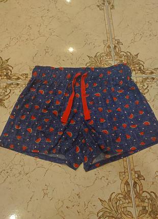 Легкие, приятные на ощупь, с ярким и веселым принтом, арбузы", который удлинит летнее настроение. Пояс 37, тянется до 43, по боковому шву 32 см.