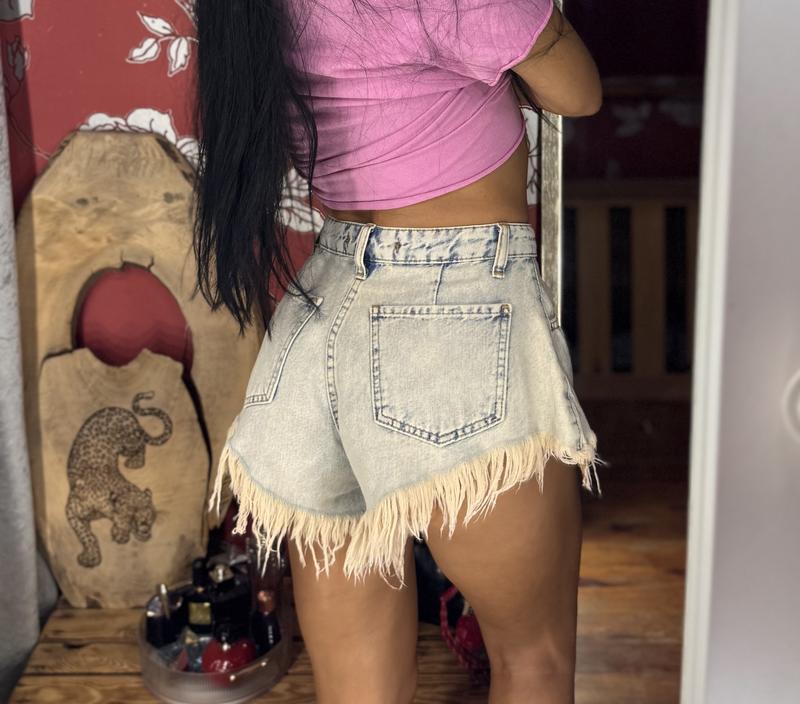 Шорты из толстого котона, размер s, с бахромой бежевого цвета. Состояние новых, надела всего раз, цвет насыщенный , не стирались еще ни разу. Без минимальных дефектов. Надеты на росте 165, от 63, об 90 (Максимальные параметры , на которые подойдут шорты, не тянутся)
