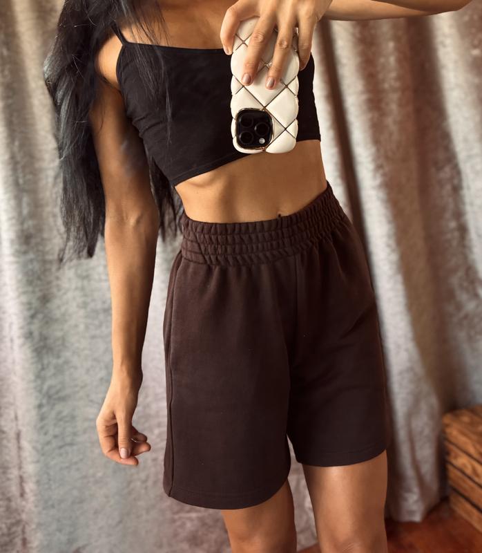 Шорти шоколадного кольору, розмIр xs/s. Тканина двохнитка . Надягала лише раз, не мIй стиль. Стан нової речі, без мінімальних дефектів. Одягнені на рості 165, от 63, об 91