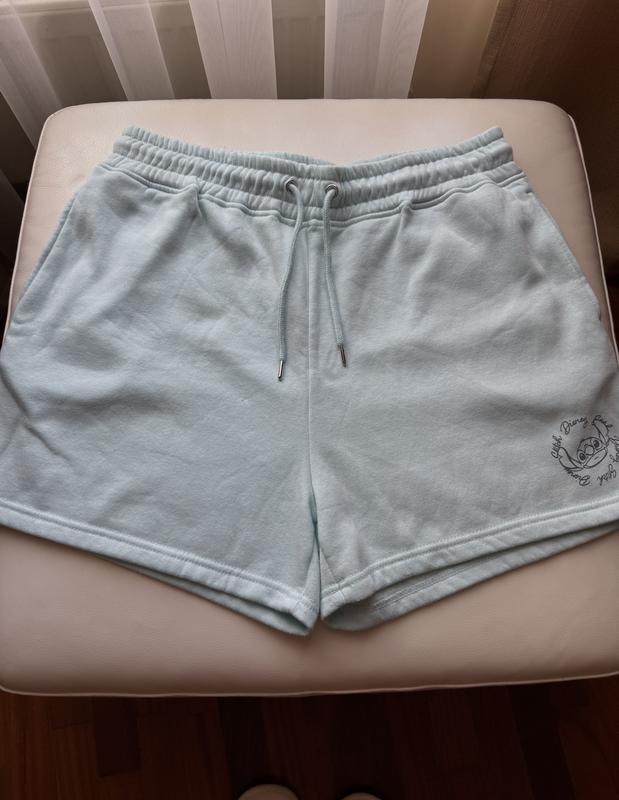 Ніжно- блакитні шорти на флісі, розмір L. Склад : 60% поліестр, 40% бавовна.