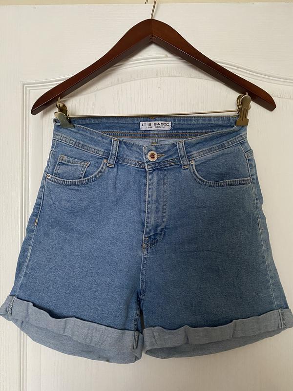Шорти джинсові фірми it’s basic. Джинс тягнеться.Розмір 36,але добре сідає і на 38. Виріб блакитного кольору.Має дефект (є на фото) на використання не впливає.Також трошки розтягнутий низ штанки (що легко можна прибрати в ательє).Загалом стан хороший