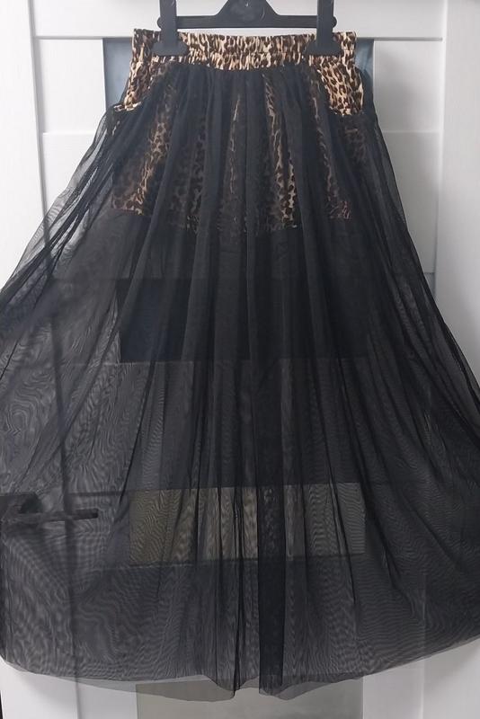 Шорти-юбка "леопард" р.S Питательные, в идеальном состоянии. Короткие шорты принта леопард с длинной черной фатиновой юбкой. Есть два кармана. На резинке. Замеры: пояс 28см, попа(стегна) 45см, длина шорт 25см, длина фатина 87см.