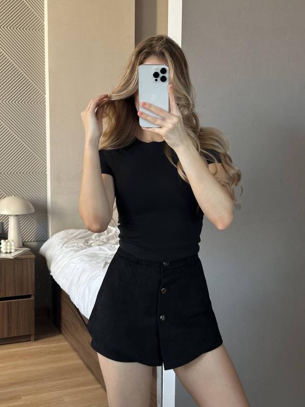 Спідниця-шорти🥰 Мод: 4942-396 Розмір 42-44, 44-46 Тканина: якісний замш на дайвінгу Колір: чорний, шоколад, бордо Ціна- 769 грн🔥