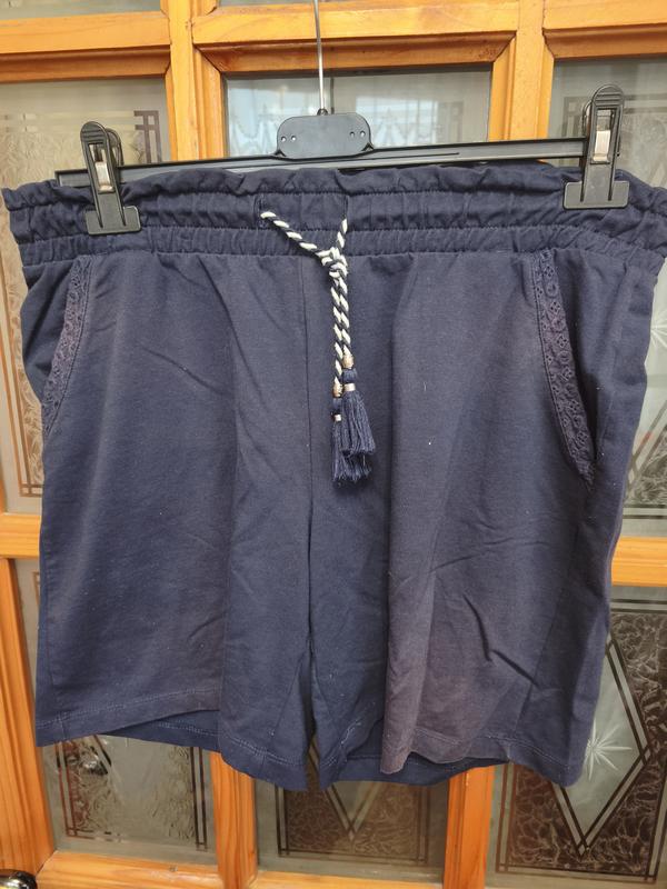 Довжина-43см. ПОТ-44-тянеться до 54см. ПОБ-54см. Ширина штанки в пахуПО-32см. .. Посадка спереду-27см., ззаду-40см. Брак видно на фото.