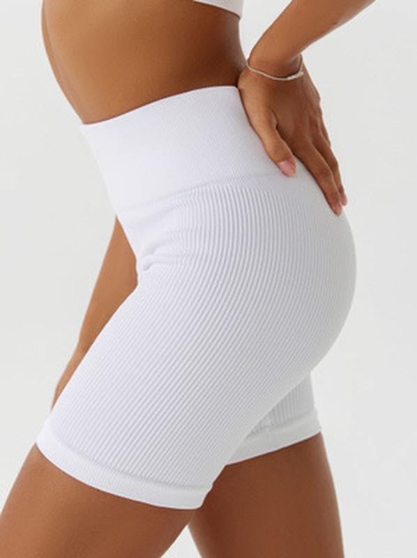 Велосипедки в рубчик, высокая посадка на талии широкая резинка, хорошо тянутся, плотные. Длина 35; ПОТ 31-38; ПОБ 33-46. Идеальный белый цвет.