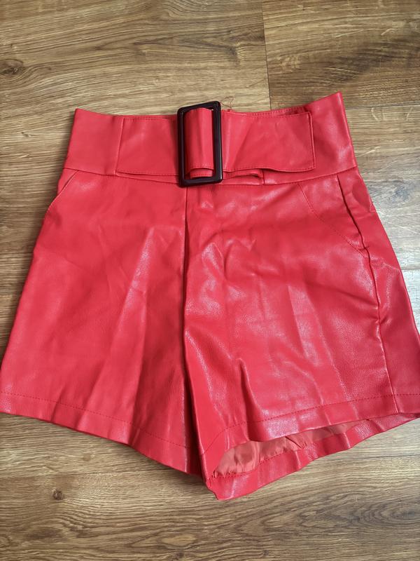 Шорти з кишенями з еко шкіри. Талія 64, довжина по боковому шву 35.