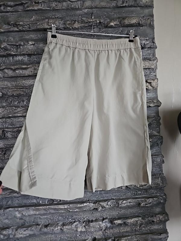 Бледно мятный цвет. Карманы. 100% котон. Заявлено 40. Пояс на резинке. Сбоку разрезы. Полуобхват тал. 38 Полуобхват бедер 50 Длина 62 Высота посадки спереди 33