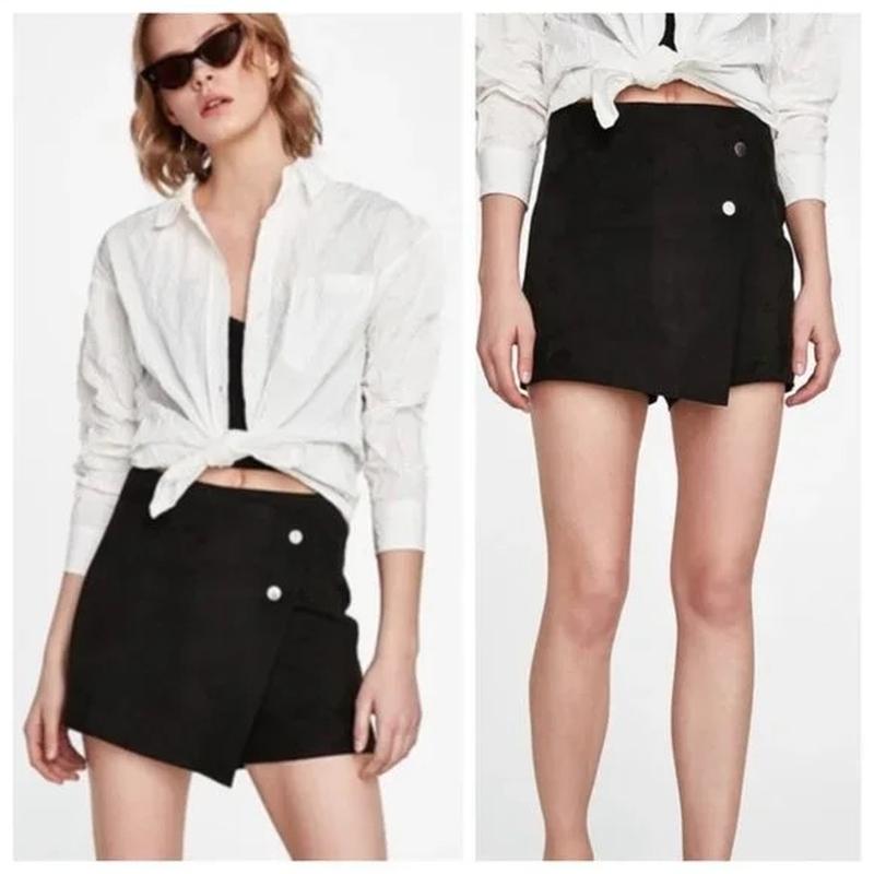 🖤 Трендова спідниця-шорти з екозамші Стильна та практична модель, яка поєднує в собі жіночність спідниці та комфорт шортів. Ідеальний варіант як для офісу чи навчання, так і для прогулянок. ✨ Особливості товару: • Фасон: Спідниця-шорти на запах (skort). • Декор: Дві акцентні сріблясті кнопки, що додають виробу вишуканості. • Матеріал: Якісна екозамша — м’яка на дотик, приємна до тіла та гарно тримає форму. • Колір: Глибокий чорний (класика, що пасує до всього). • Застібка: Потайна блискавка збоку для ідеальної посадки. Ця модель чудово виглядає з високими чоботами (ботфортами), грубими черевиками або лоферами. Поєднуйте з об’ємними светрами, базовими гольфами або класичними сорочками. Стан: (Ідеальний). Розмір С (42/44), гарно тягнеться Всі бірки на фото, фото на собі не роблю
