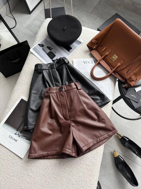 🔥🌟НОВИНКА🌟🔥 Шорты утепленные 😍 Модель: 756 Ткань: эко-кожа на велюре Размеры: 42/44 и 46/48 Цвета: черный и коричневый *ремень не идет в комплекте