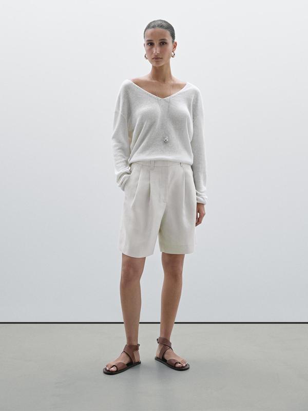В наличии 100% льняные шорты-бермуды Massimo Dutti. Новые, с бирками. В размере 36. Замеры: Пояс 37, посадка высокая 32, длина 53, бедра 51-52.