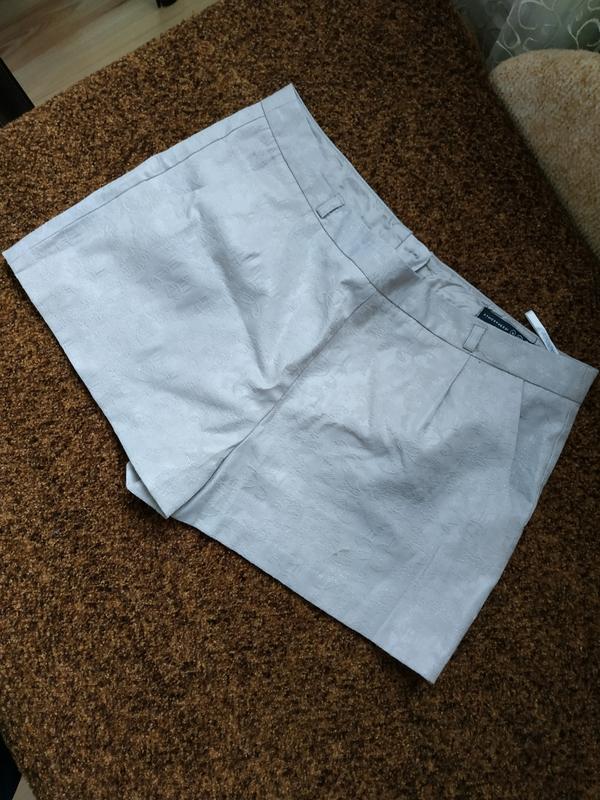 очень красивые стильные шорты, с карманами, молния сзади, есть петли для ремня. ткань с легким блеском, похожа на габардин. в идеальном состоянии. размер 14, смотрите замеры пот 43см поб 56-57см длина по боковому шву 33см длина пр внутреннему шву 6 см посадка впереди 29см посадка сзади 38см