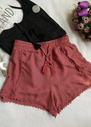 Шорти віскозні з бахромою на літо Бренд: Atmosphere Дуже легкі і невагомі Не просвічуються! Розмір: 10 - М ПО талії: 36 (гумка) Довжина: 33 см Нові