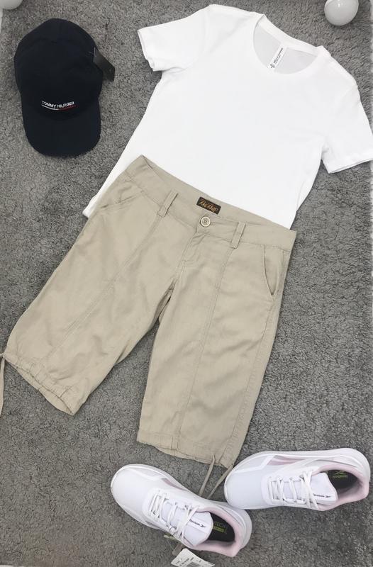 Розмір : 1 Пояс : 78 см Посадка : 18/30 см Стегна : 98 см Довжина : 49 / 32 см Кишень : 4 шт. Склад:55%льон, 45% бавовна