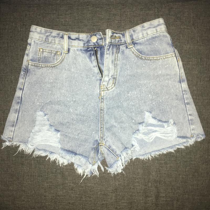 Крутые джинсовые шорты с серебристым напылением 🤩 Обхват талии 66, обхват бёдер 96 👍🏻 Торг ✅