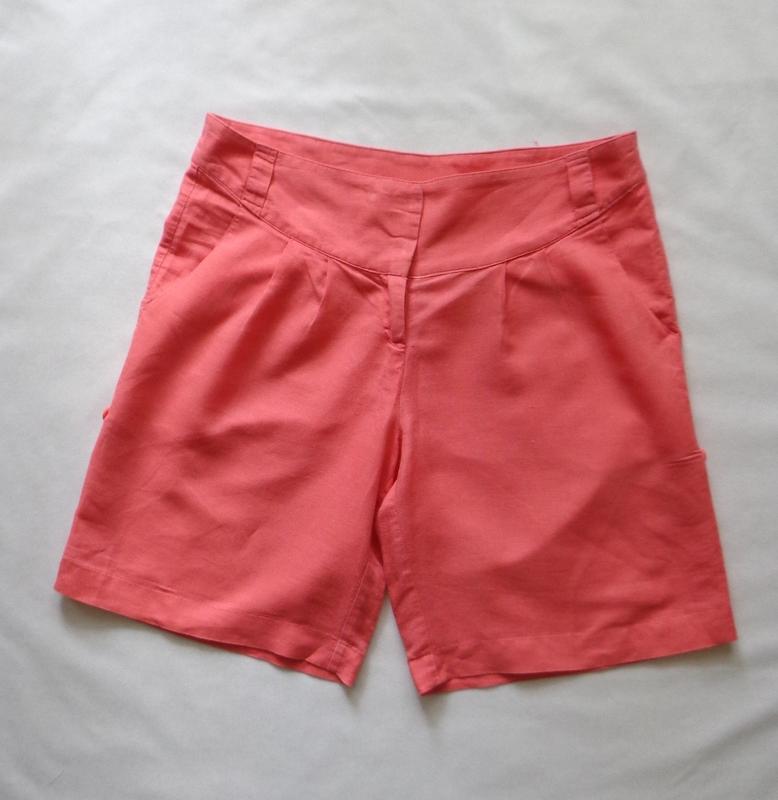 Шорты кораллового цвета. Талия - 41 см Бедра - 50 см Длинна - 48 см (подкаченные - 38 см) Ширина штанины - 30,5 см Бирки срезаны. Ткань похожа на натуральную.