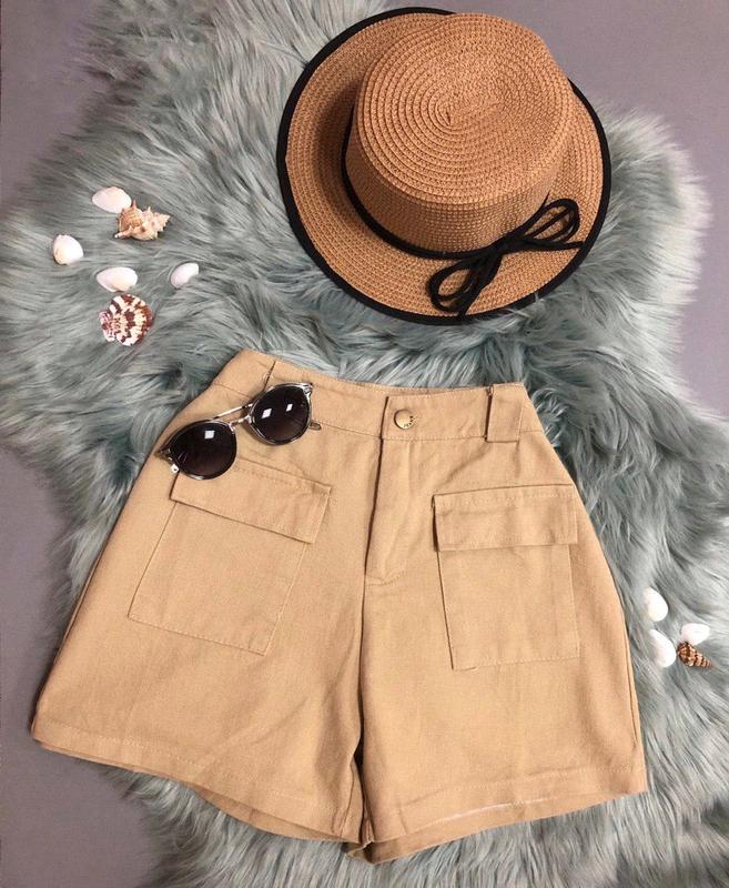 Відмінні шорти на літо Колір бежевий Розміри: Розмір М: Талія 34 см Пів обхват стегон 47-48 см, на обхват стегон до 97 см Довжина 35 см Л (46-48): ПІТ 36-37 см Стегна 48 см Длина по боковому шву 35,5 см Нові