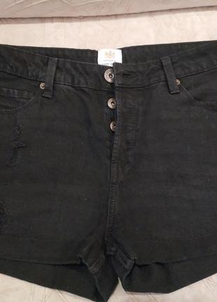 джинсовые шорты с высокой посадкой, с отворотами и лёгкими потертостями в идеальном состоянии. размер 12. цвет черный, в некоторых местах, где потёртости, серый