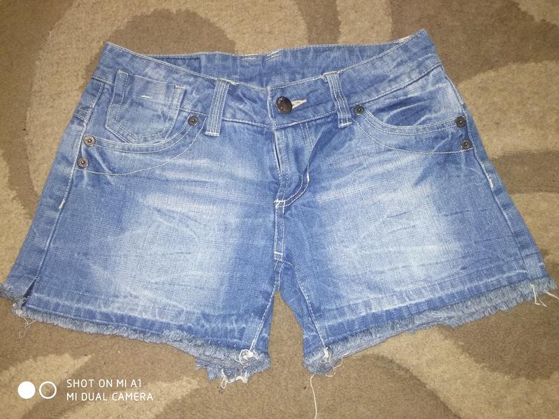 Джинсовые шорты, голубые со стразами на карманах 🔥пот 38 см 🔥ПОБ 49 см 🔥посадка 26 см 🔥длина по боковому шву 30 см