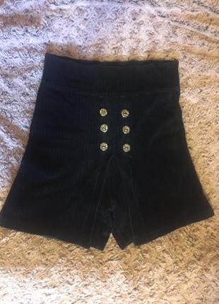 Велюровые тёплые шорты ,чёрные, велюр в рубчик , ткань плотная,хорошо тянется,высокая посадка ,размер XS-S