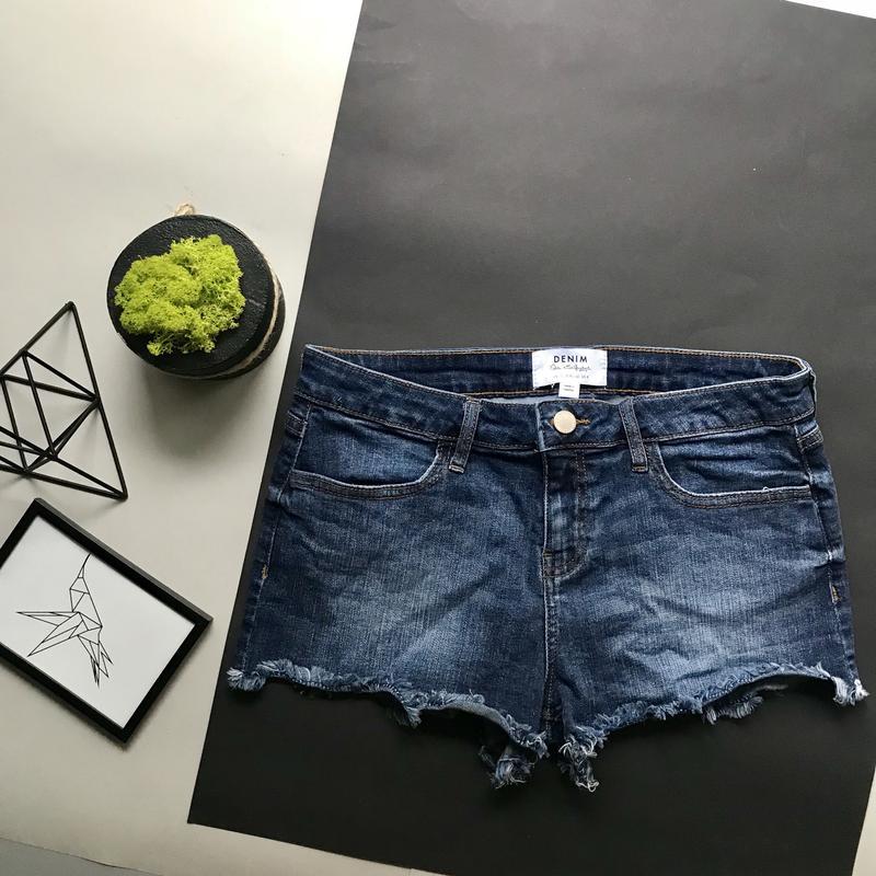 Тёмно синие джинсовые шорты с высокой посадкой шорты с высокой талией с бахромой Эластичные,хорошо тянутся идеально садятся по фигуре Состояние идеал Размер M-L 12 40 Пот37 Поб 48 Длинна 30