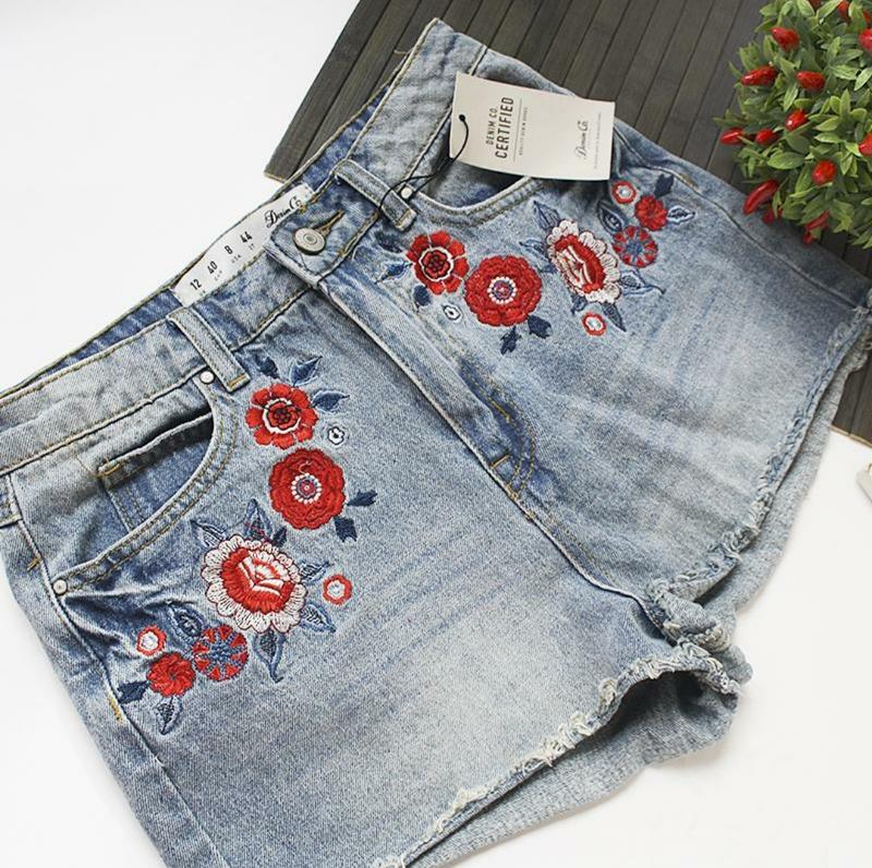 Denim Co шорты с красивой вышивкой Высокая посадка Новые с биркой Размер 12 (М) замеры: ПОТ 35-36, длина сбоку 30, посадка спереди 31, сзади 36. ПОБ 48