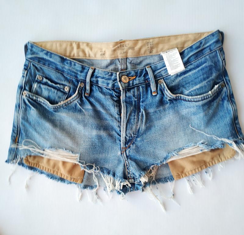 Размер указан 30, полу обхват талии 40 см, полу обхват бедер 50 см, высота посадки 24/38 см,100% котон не тянутся