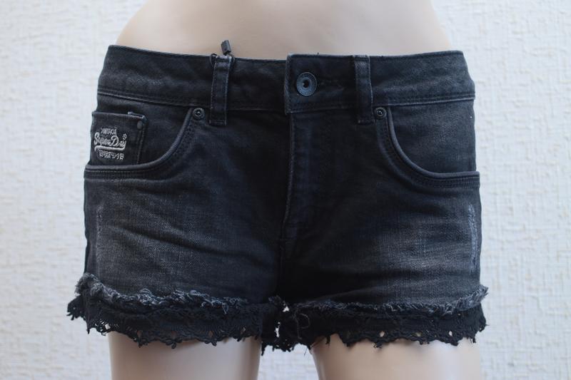 Шорти англійської бренду SUPERDRY, чорного кольору. Склад: 99% бавовна, 1% еластан. Розмір: W28,маломерят на 27 (ПІТ 38, ПОБІДИ 47-48, довжина 23 см) Ціна: 525 грн.