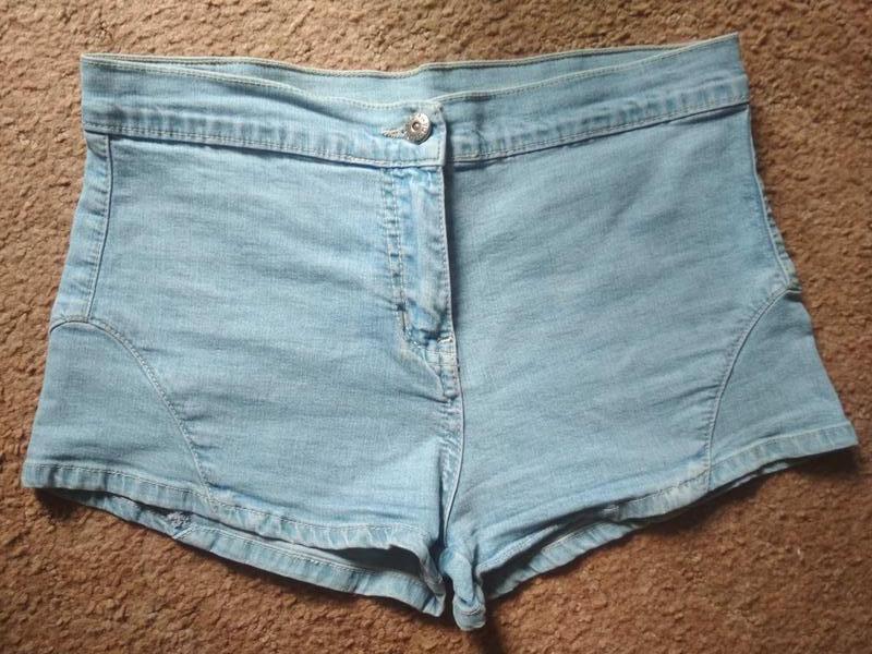 Продам шорты джинсовые. Размер M-L. Хорошо тянутся. Цвет голубой. Состояние очень хорошее. Замеры: ПОТ 36-40 см. ПОБ 41-50 см.