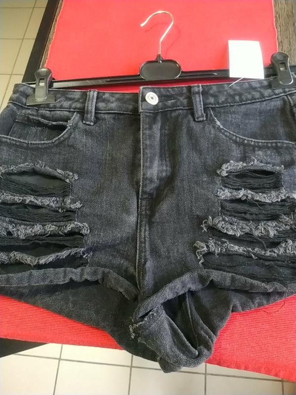 Женские черные рваные шорты. Ширина 40 см, длинна 29см. Рады видеть Вас на нашей странице, в наличии много брендовых товаров. Если остались вопросы, задавайте👌