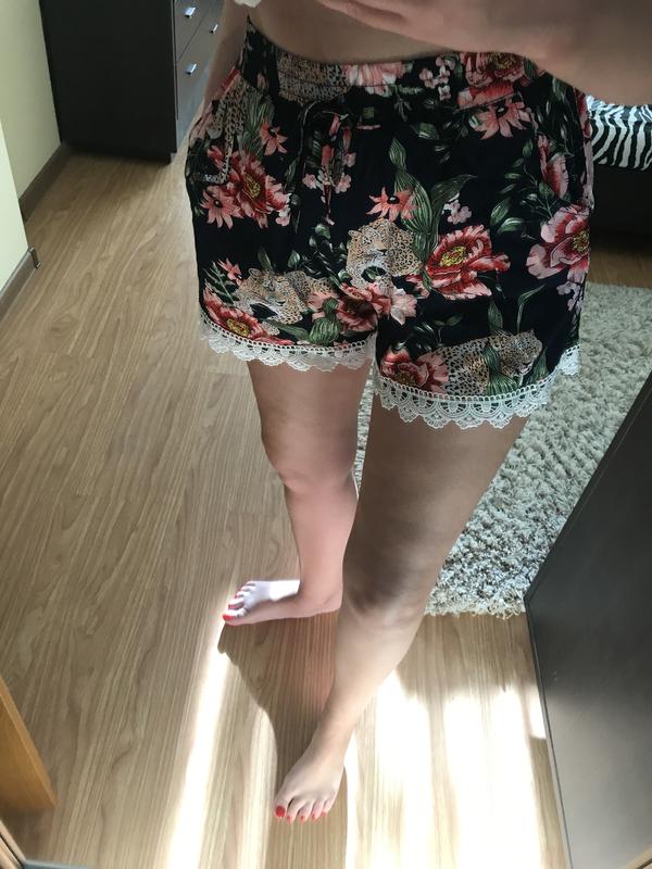 Очень классные шортики. Покупала в Италии. Приятные к телу и очень легкие. Самый раз для жары. Снизу аккуратное кружево. Сверху есть резинка со шнурками, которые формируют талию, можно регулировать. Удобные и красивые!