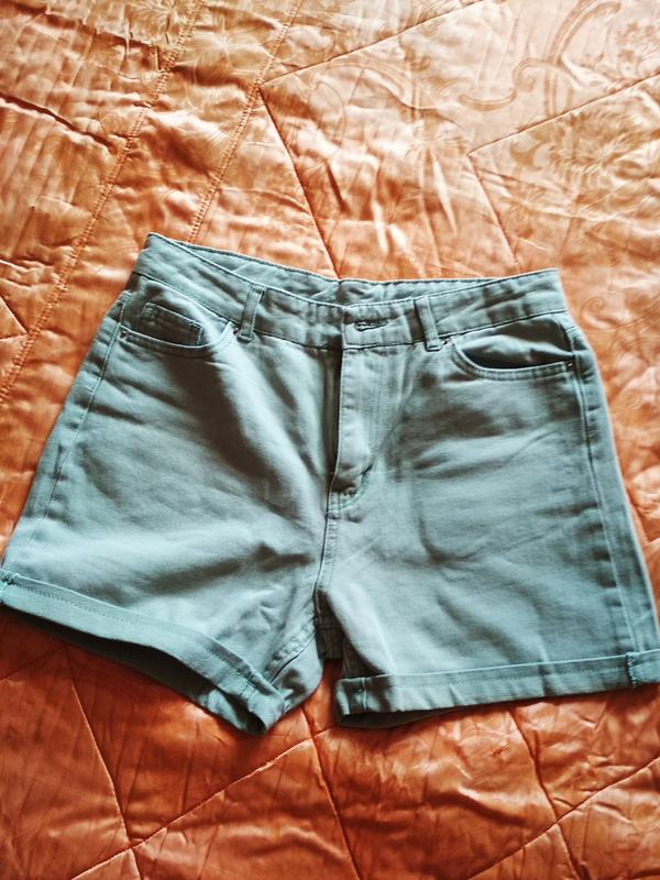 Шорты новые. Пролет с размером. Цвет - мята, удлиненные. Заказывала через инстограмм. Последние фото с сайта где заказавала. Производитель - Турция. Размер:32. Картон очень плотный, без стрейча. Размер (л).