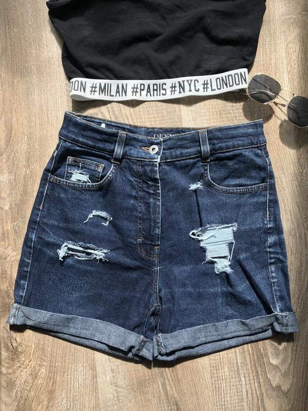 Шорти на високій посадці ,добре сидять на талії . Підійде на розмір від Хс до М .