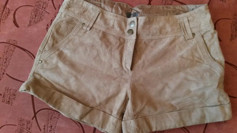 Шорты Cache cache Размер 42 Новые, но без этикетки, купила себе, но так и не носила Пуговички дополнительные есть - пришиты на шортах Состав 100% polyester - внешне как замш, кто не понимает, тот и не поймет Очень добротно и качественно сделаны Фото получилось не точное в цвете, извините. Реальный цвет - бежевый. Реальные замеры: ОТ - 42см По бедрам - 53см Длина по внешнему шву - 32см Длина по внутреннему шву - 11см Посадка спереди - 22см Посадка сзади - 34см
