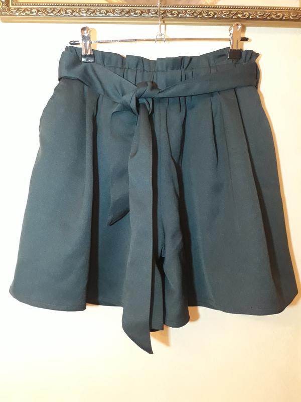 Шикарні круті шорти спідниця , на високій талії з поясом зав'язкою , дуже круто виглядають , на підкладці , якість чудове . дуже гарний колір , темний зелений . Нові виміри за запитом .