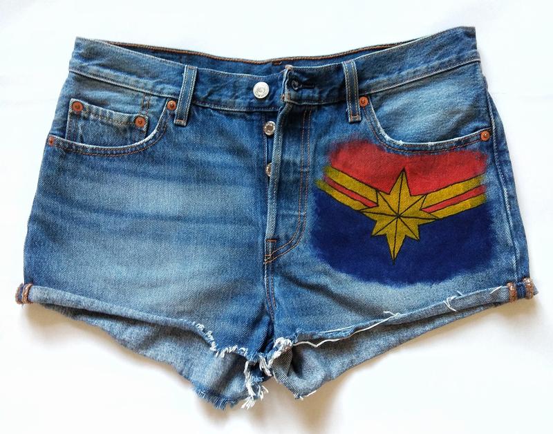 Короткие шорты на кнопках, высокая посадка, ручная роспись. ПОТ - 39 см ПОБ - 49 см Посадка - 27 см Длинна по боковому шву - 27 см