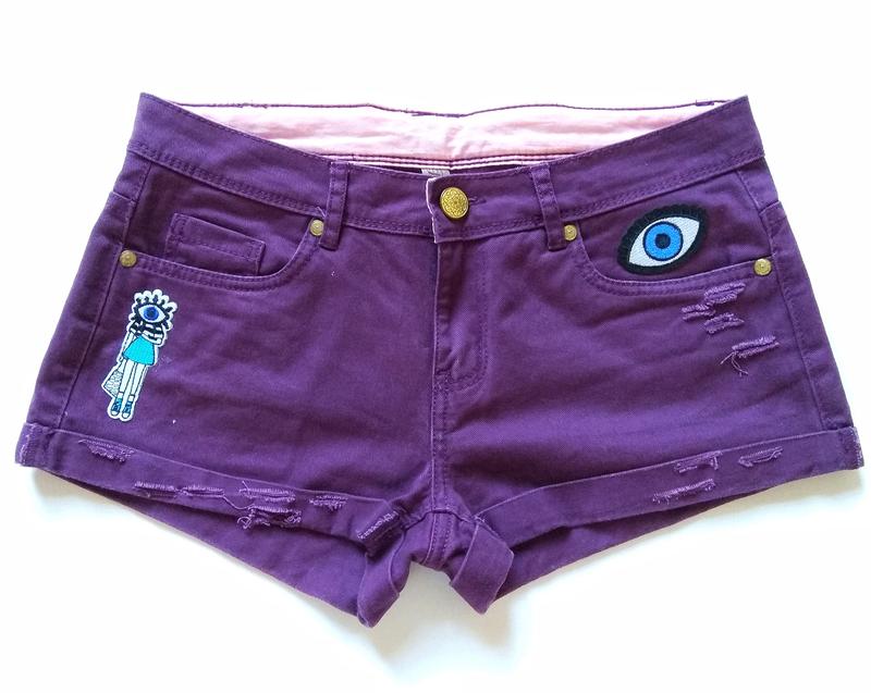 Стрейчевые шорты с потертостями и нашивками. ПОТ - 36 см ПОБ - 49 см Посадка - 21 см Боковой шов - 23 см Нашивки прошиты вручную.