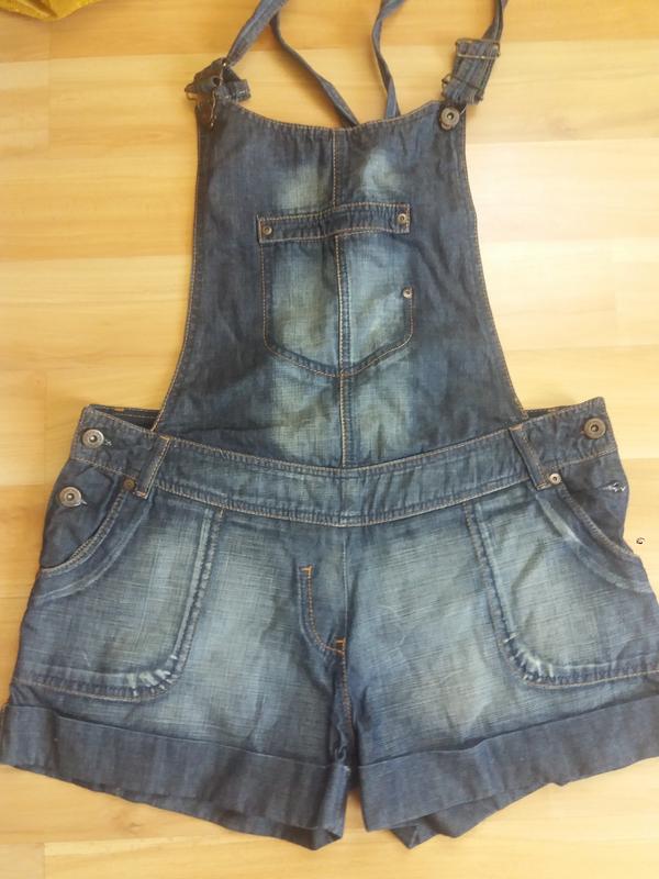 Шорти джинсові на шлейках. Фірма Pimkie. Заміри довжина від талії 36 см Поб 51 см Талія 46 см