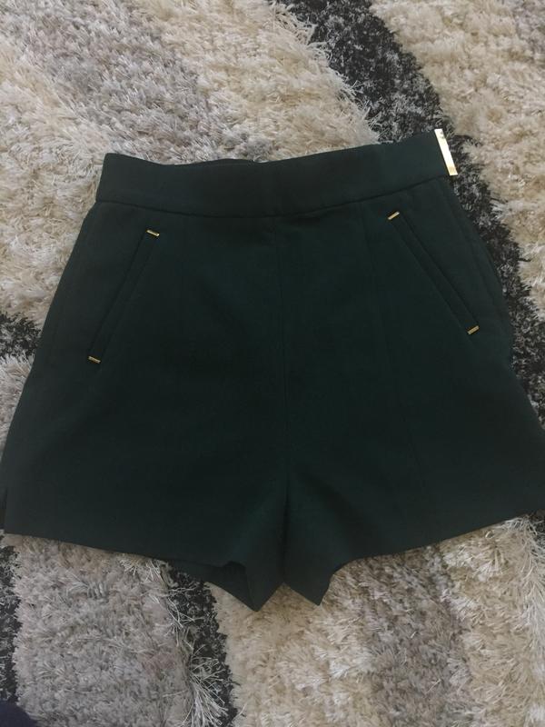 Стильные шорты красивого изумрудного цвета, из костюмной ткани, размер XXS,XS- S{маленькая}. абсолютно новые, не были в носке, прогадала с размером. Пояс на резиночке, с боку на молнии, есть кармашки. Вживую цвет более насыщенный, фото не передаёт цвет