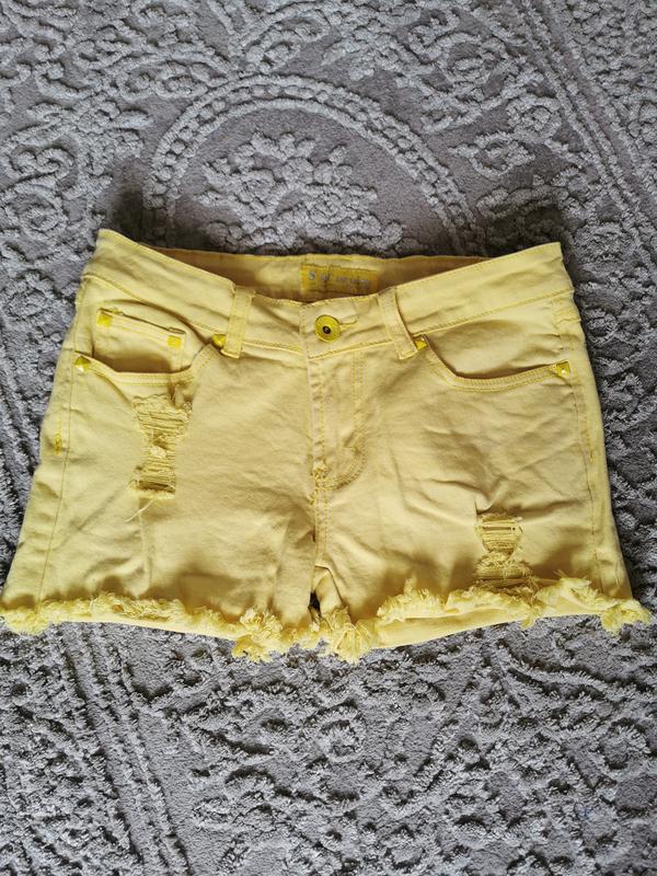 Продам шорти, джинс, жовті, 42-44, ширина талії 38см, бедер 45см