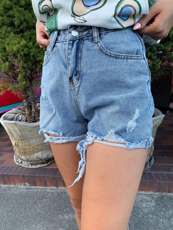 MUST HAVКрутейшие рвані джинсові шорти Ідеальна посадка, завищена талія, найбільш трендовий колір деніму Арт. 351 Розміри: S, M, L